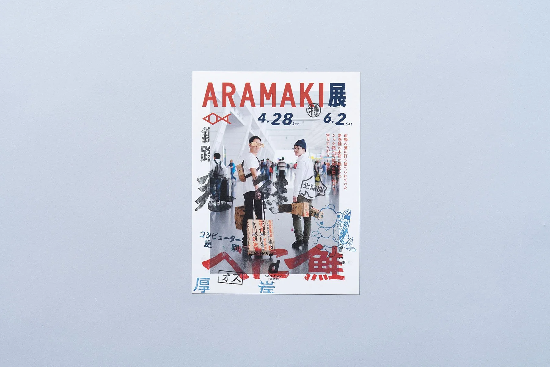 「ARAMAKIとはいったい何か?」という、当時、村上智彦さんも整理できていなかったテーマに挑んだ展覧会。村上さんと一緒に、製函工場や水産加工場を訪ねて北海道各地を巡りました。d design travel 北海道号の制作で学んだ、現場に足を運び、自分の目で見て、肌で空気を感じる仕事の進め方を実践したプロジェクト。